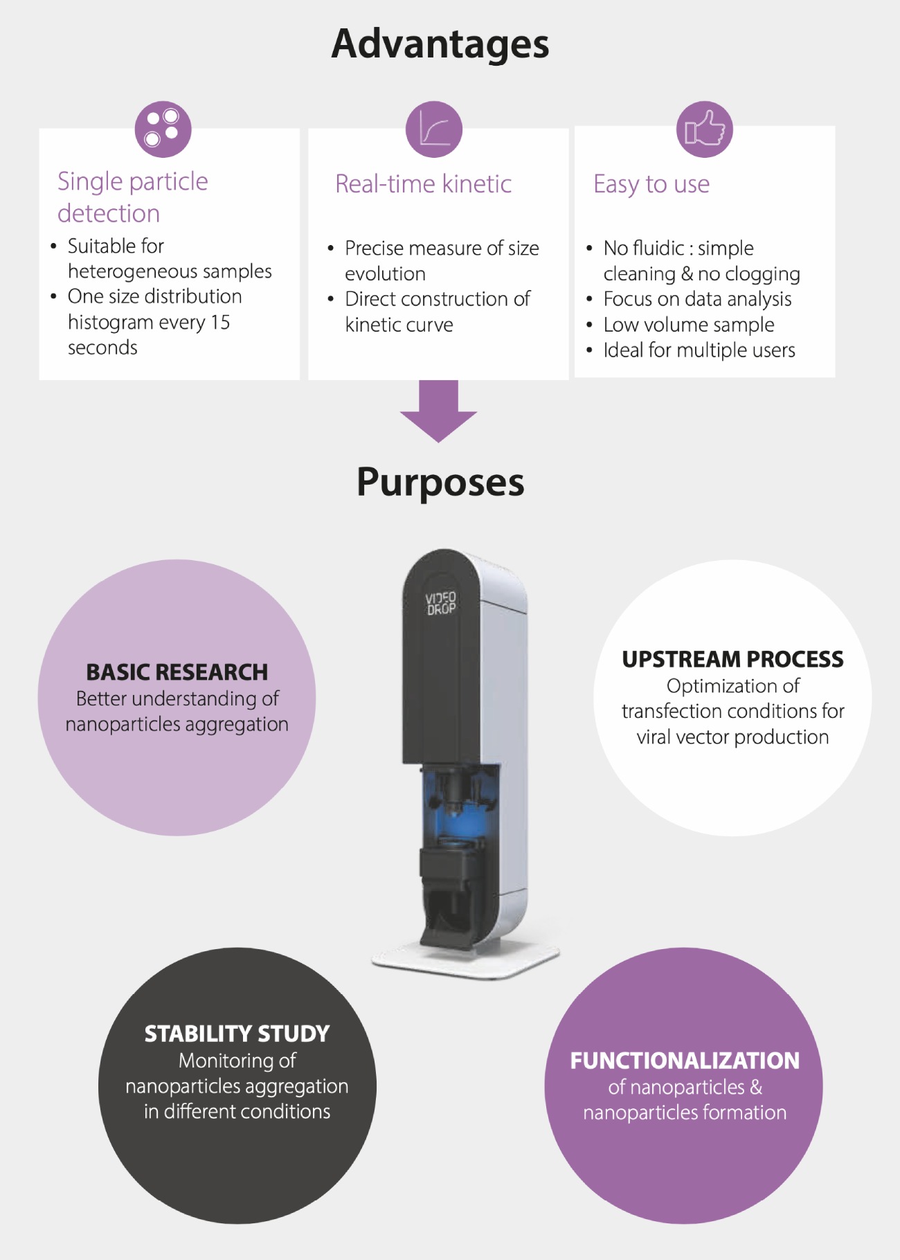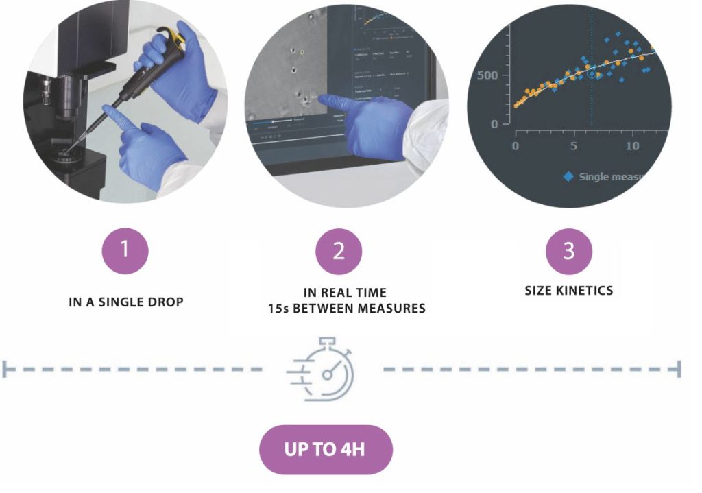 Videodrop SK is a new feature developed to measure a temporal evolution of size like nanoparticle aggregation or complexation. It offers a revolutionary approach to transfection workflow optimization for Lentivirus (LV)